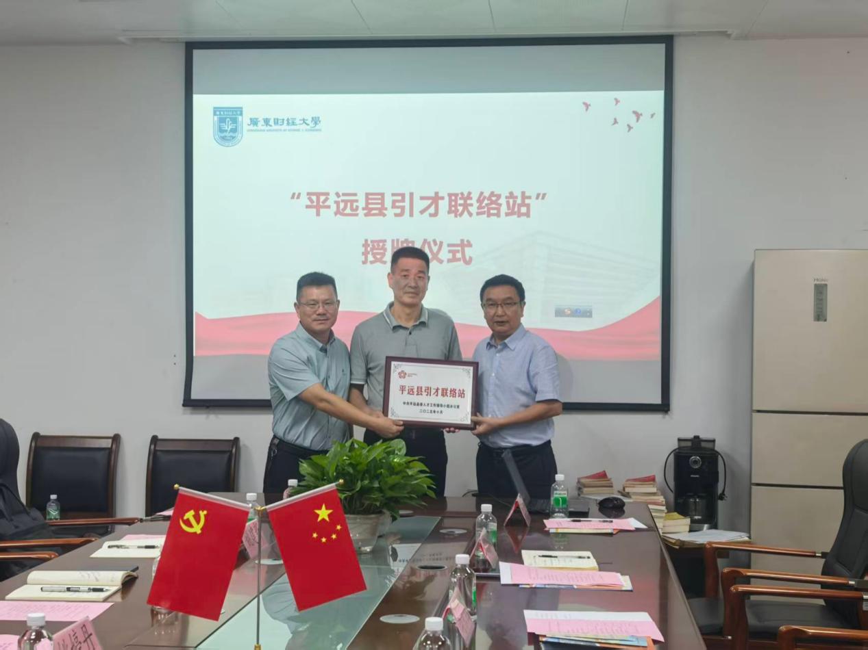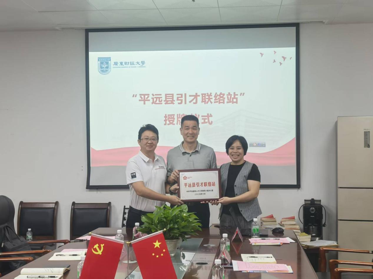 活动中,双方共同举行了“平远县引才联络站”授牌仪式,由马宗国院长、王德斌书记、何晓聪书记和卢洁虹副书记代表学院接牌,标志着校地合作迈入常态化、机制化新阶段。