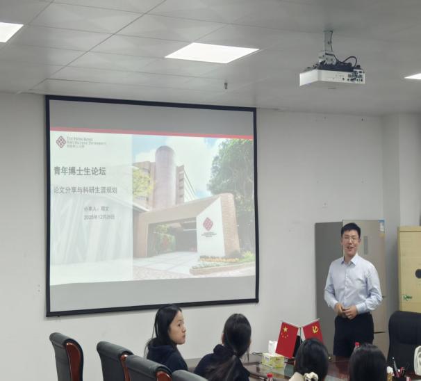 随后,两位青年学者结合自身从硕士到博士、博士后的求学科研经历,分享了关于研究方向选择、时间管理、心态调整以及长远学术生涯规划的宝贵经验。王旭博士强调在硕士阶段建立系统性知识框架与批判性思维的重要性,并分享了其在时间管理中采用的“目标-周期-复盘”三元法,帮助在场学生理解如何平衡深度科研与日常学习。程文博士作为我院培养的硕士毕业生,于中山大学完成博士学业、现于香港理工大学从事博士后研究。他通过具体案例,说明了如何在高强度科研工作过程中保持科研韧性,为同学们讲述了长远学术生涯中持续成长的内在路径。同学们踊跃提问,与嘉宾就具体学术问题与成长困惑进行了深入探讨。