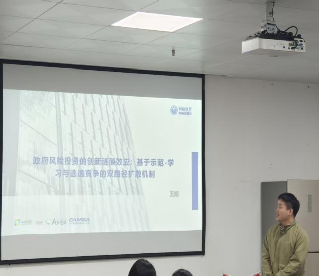 论坛邀请同济大学经济与管理学院博士研究生王旭、香港理工大学商学院博士后研究员程文两位优秀青年学者作为分享嘉宾。王旭博士围绕其研究《政府风险投资的创新涟漪效应:示范-学习与逃逸竞争的双路径扩散机制》,基于大规模投资事件数据,系统阐释了政府风险投资如何通过“示范-学习”与“逃逸竞争”双重机制,激发本地同行企业的创新响应,并深入探讨了数字化转型在其中的调节作用与边界条件。程文博士则以“Embracing Creative Nonconformists and Promoting Them May Require a High Leader Control Appraisal”为题,深度解析了高水平学术论文的创作历程、研究设计与投稿心得。他们的报告不仅展示了扎实的学术功底,更传递了严谨的科研精神。