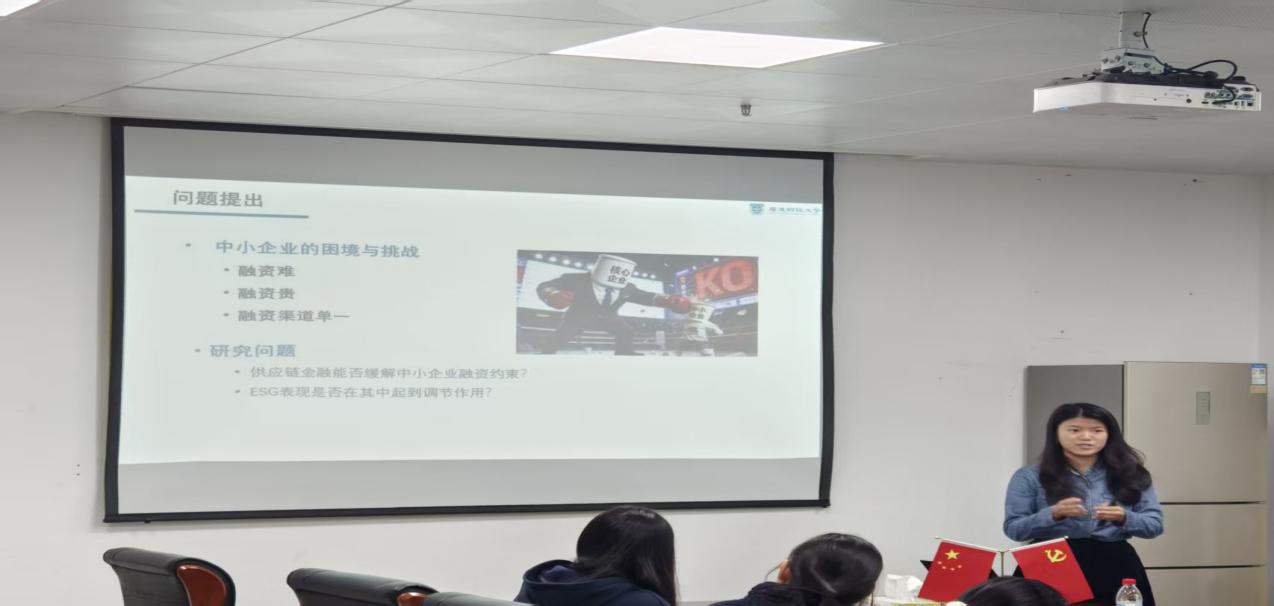 最后,学院企业管理硕士研究生颜慧就自己的研究构想进行了汇报展示。两位青年学者围绕研究问题的创新性、理论框架的严密性与方法设计的可行性等方面,进行了细致的点评与提问,为颜慧同学后续研究的优化与调整给出了指导意见。