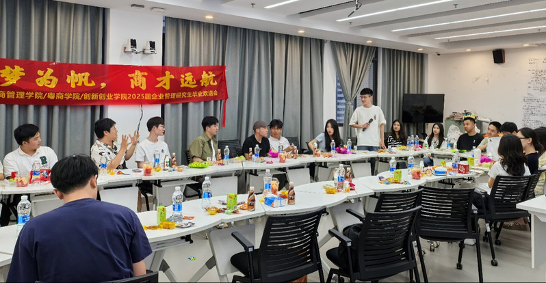 2025年5月14日18:30,尚学楼702教室洋溢着温馨与不舍的氛围,工商管理学院在此举办了2025届企业管理研究生毕业生欢送晚会。学院特别邀请了学院老师韩玺以线上视频寄语的方式出席欢送会,同时学院辅导员李细叶、2025届学硕毕业生和部分2023级、2024级同学参加了本次欢送会。