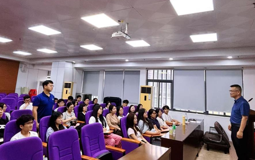 随后,马宗国结合广东产业实际与学院办学特色,剖析青年投身未来产业建设的时代使命。他以本地传统产业痛点为引,点明发展未来产业的战略必要性;借助广东高新技术企业案例与前沿产业布局,展现未来产业的发展潜力与就业机遇,同时介绍学院依托校友资源开展的各类助力活动。相关内容贴合实际,对同学们做好学业深耕、职业规划具有较强的实践指导意义。