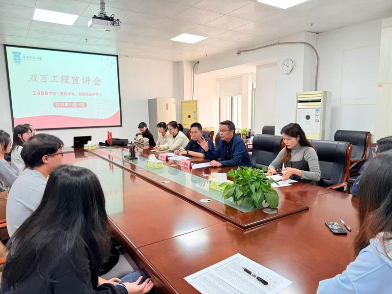 为深入解读双百工程政策内涵,号召青年学子主动参与双百工程建设,10月15日,工商管理学院(粤商学院、创新创业学院)举办双百工程宣讲会。